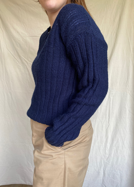 UitverkochtDonkerblauwe v-hals trui - maat S/M