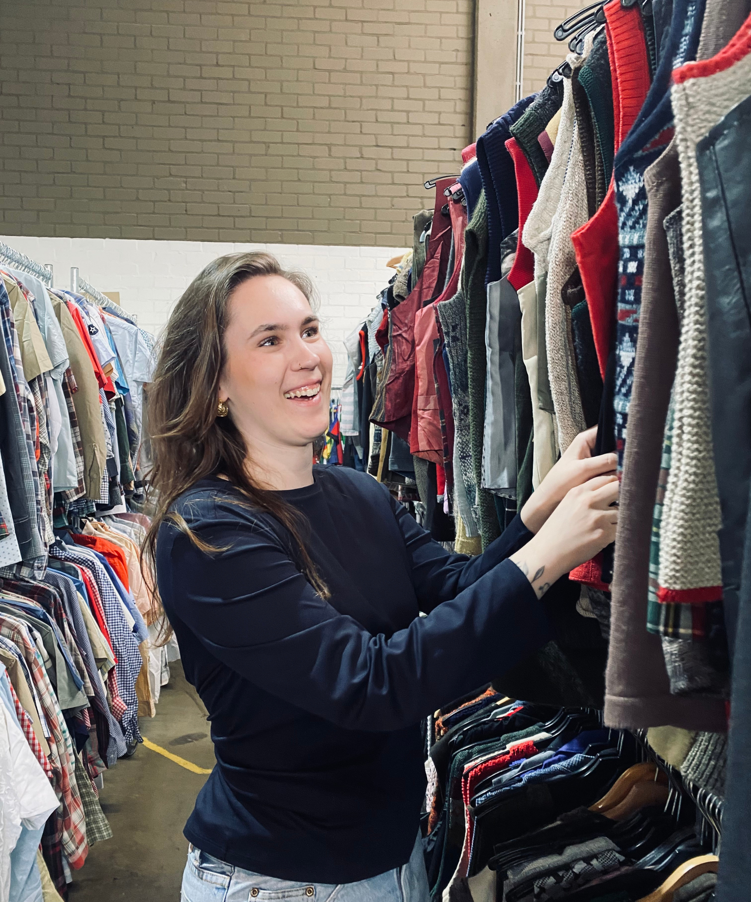 De kleding koop ik uitsluitend in bij een vintagegroothandel. Dit betekent dat ik zelf naar de groothandel ga en elk item met de hand uitkies. Het grote voordeel hiervan is dat ik kleding kan selecteren die speciaal is afgestemd op de winkel en de doelgroep.