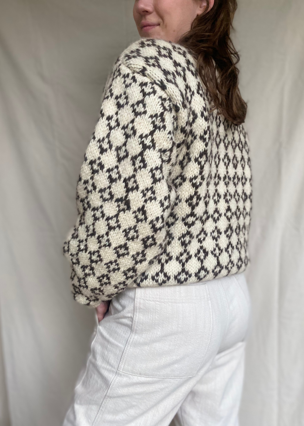 - De schoudernaad loopt door op de bovenarm, hierdoor vormt de trui zich aan jouw lichaam