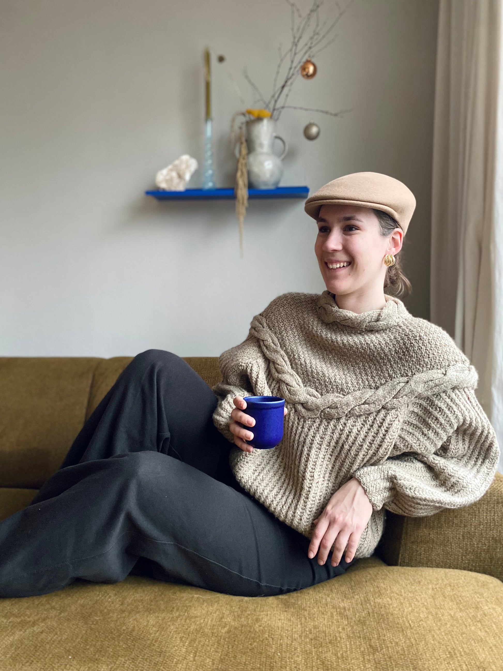 - De schoudernaad loopt door op de bovenarm, hierdoor vormt de trui zich aan jouw lichaam