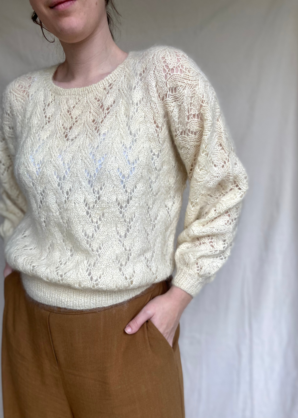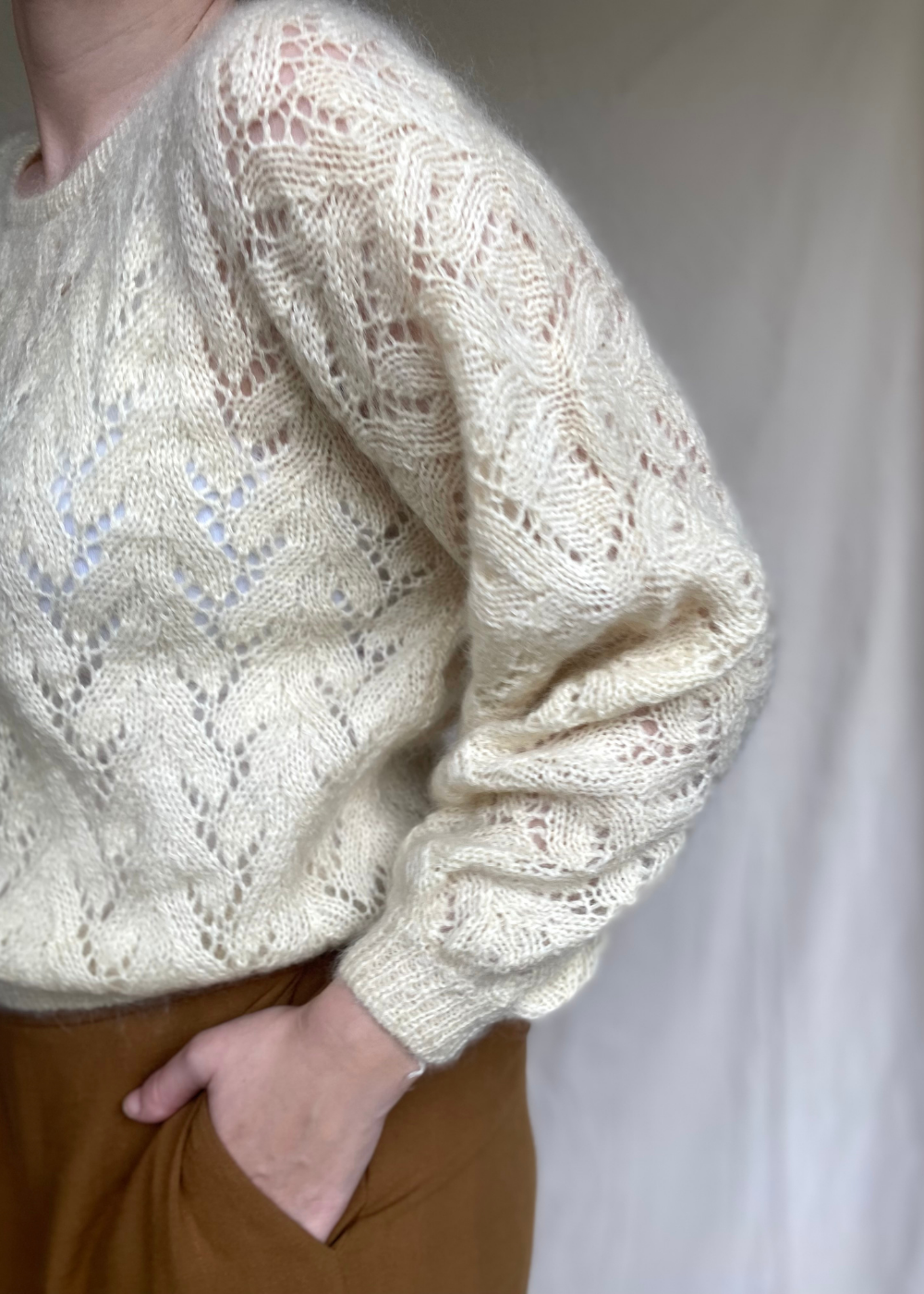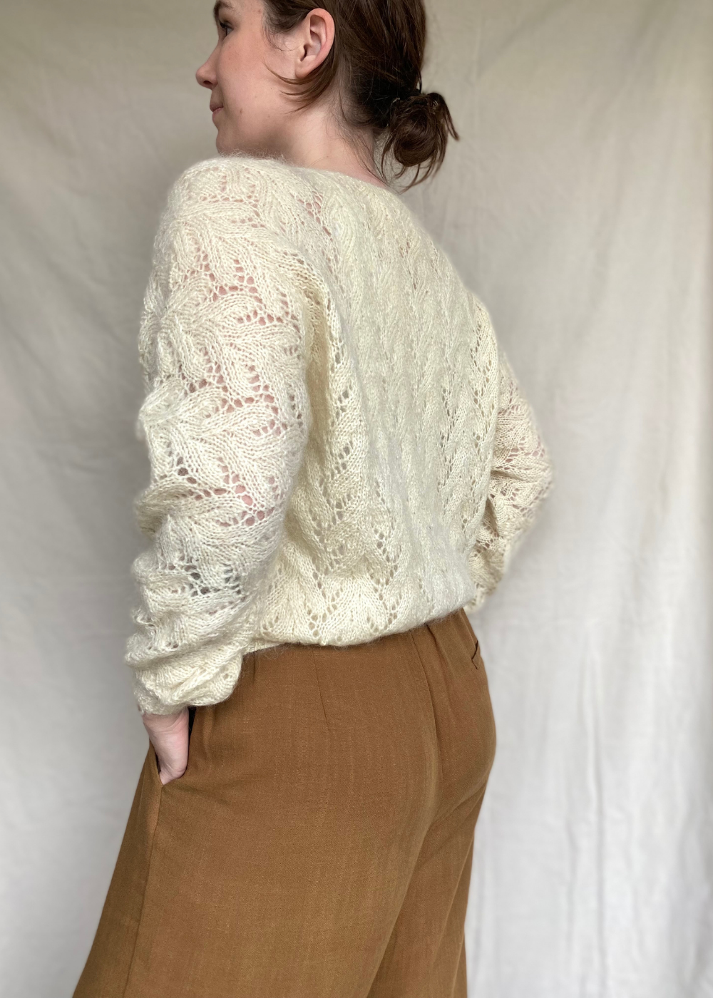 - De trui heeft geen schoudernaad waardoor de trui zich zal vormen naar jouw schouders