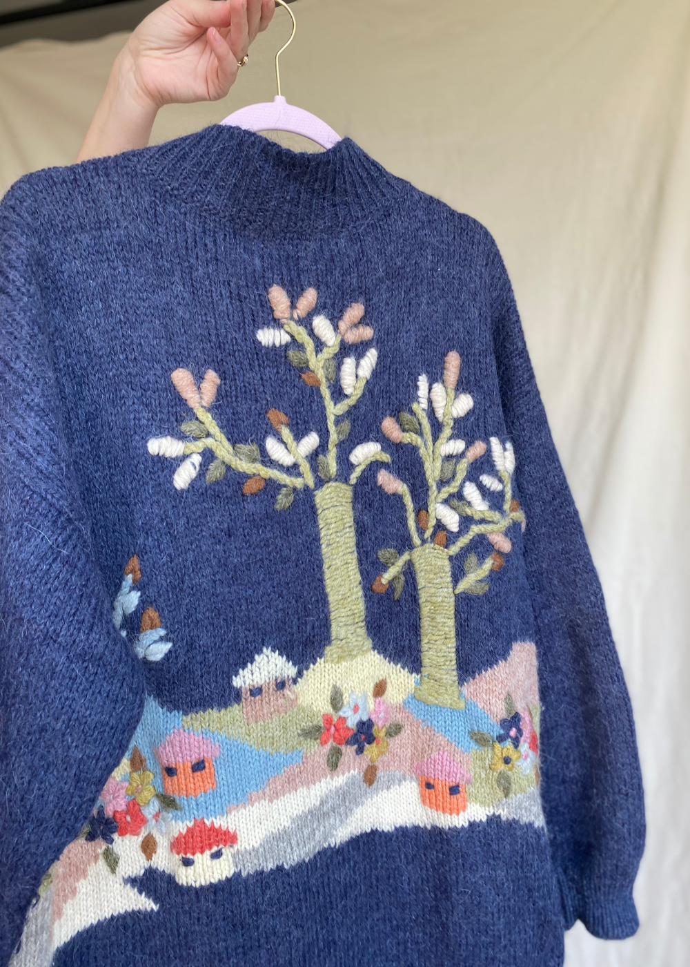 Donkerblauw vest (handgeborduurd) - maat XL/XXL
