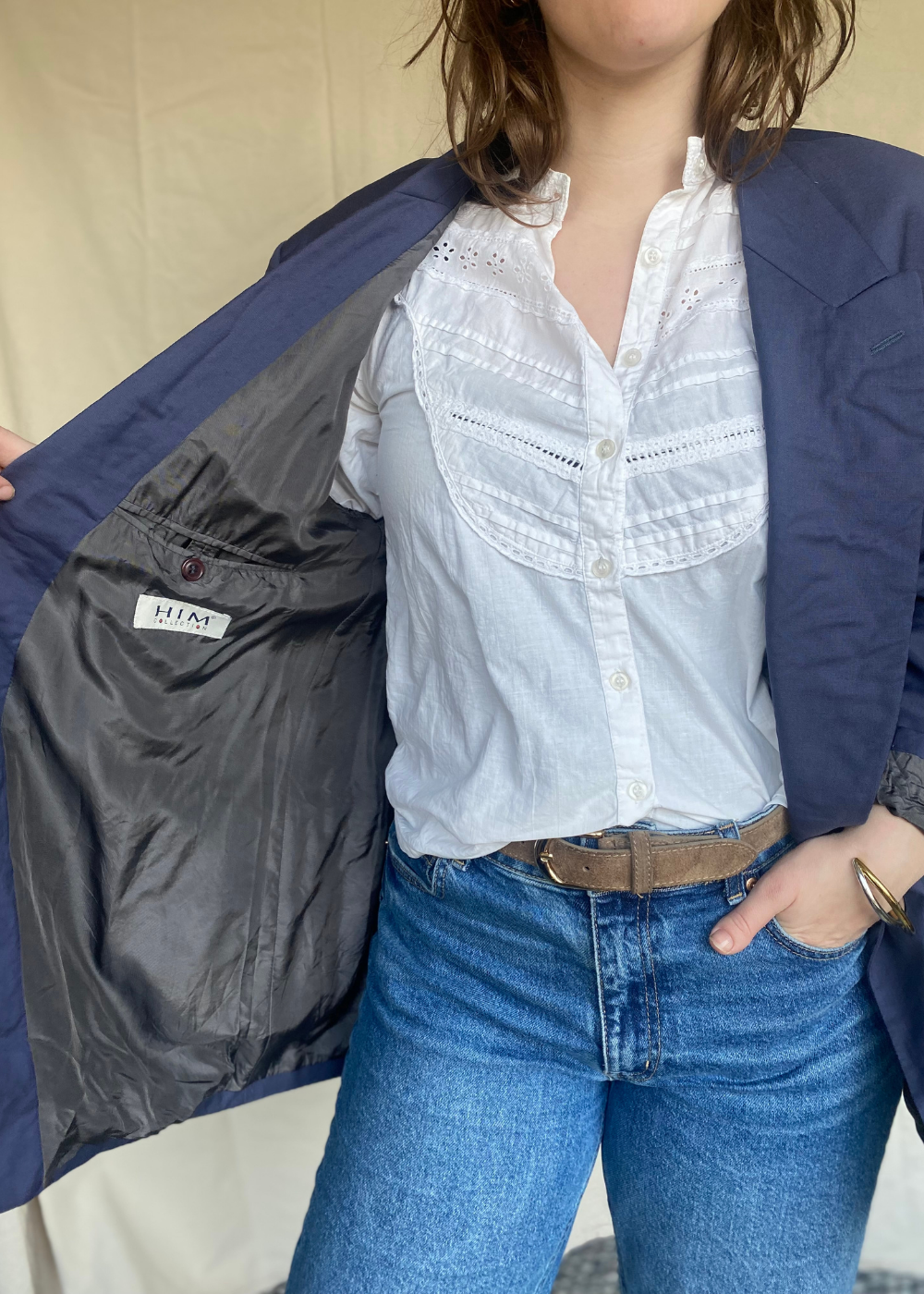 Een echte tijdloze klassieker: deze donkerblauwe blazer is gemaakt van pure lana wol. Het materiaal valt zacht, warm en comfortabel. En in tegenstelling tot veel wolsoorten kriebelt het niet. De blazer is in perfecte staat en voelt als een kwaliteitsstuk dat jarenlang meegaat.