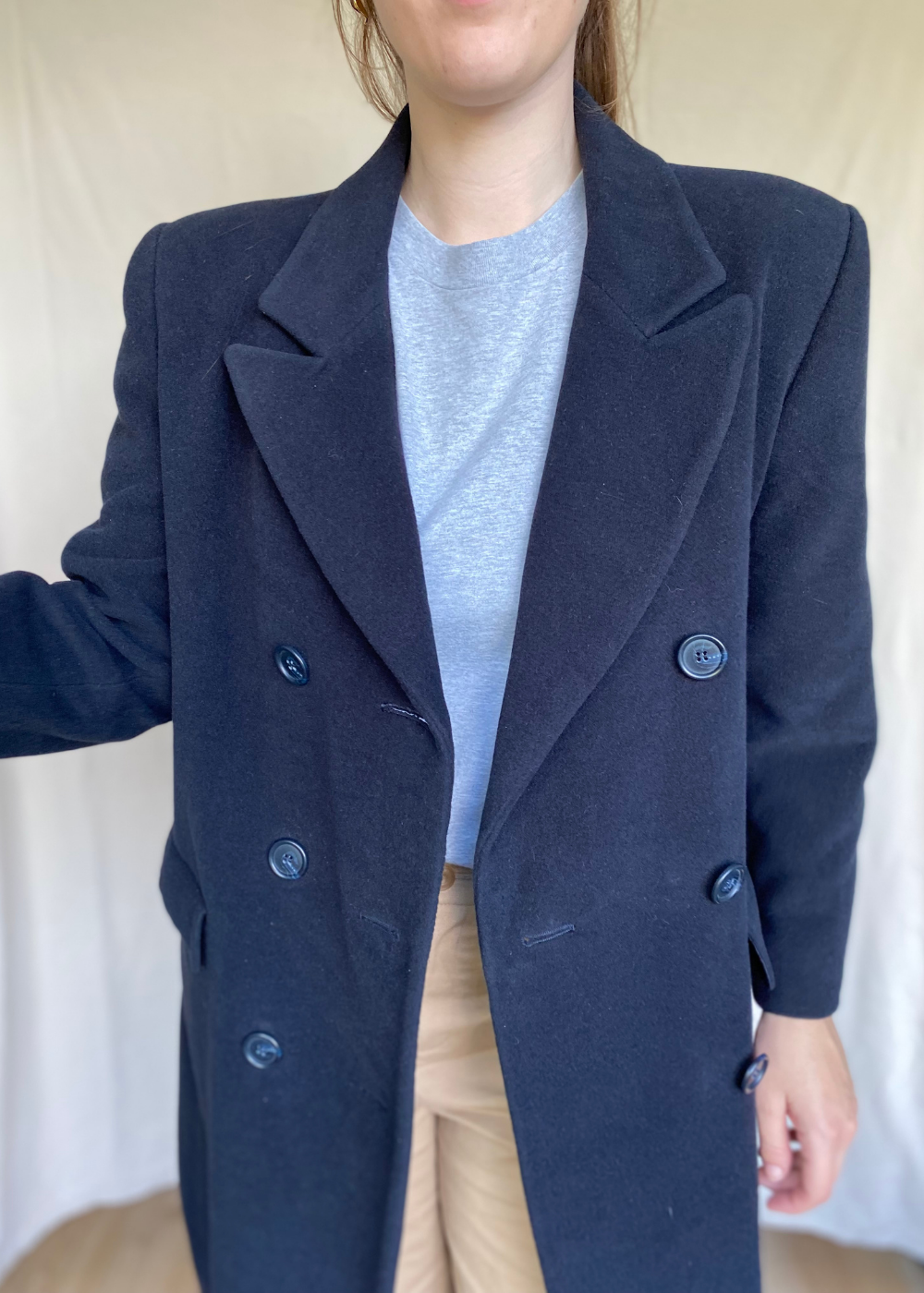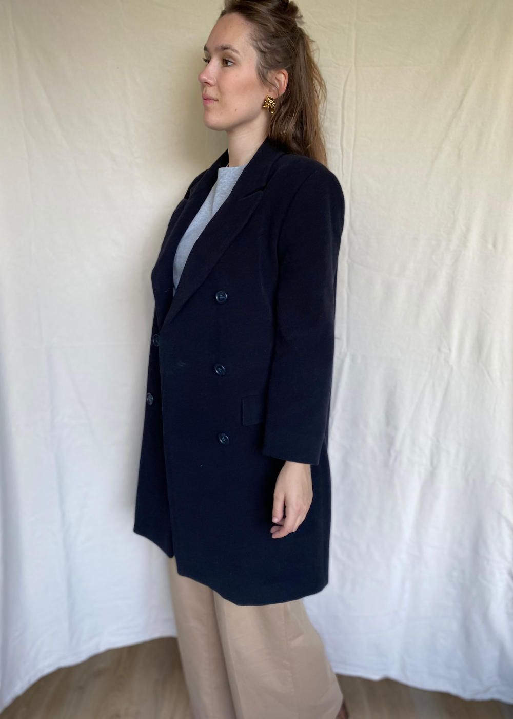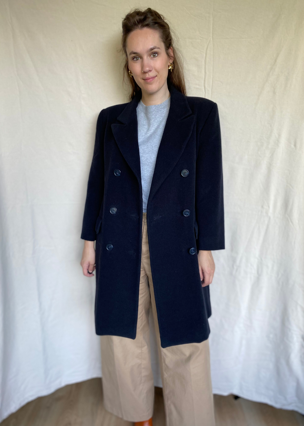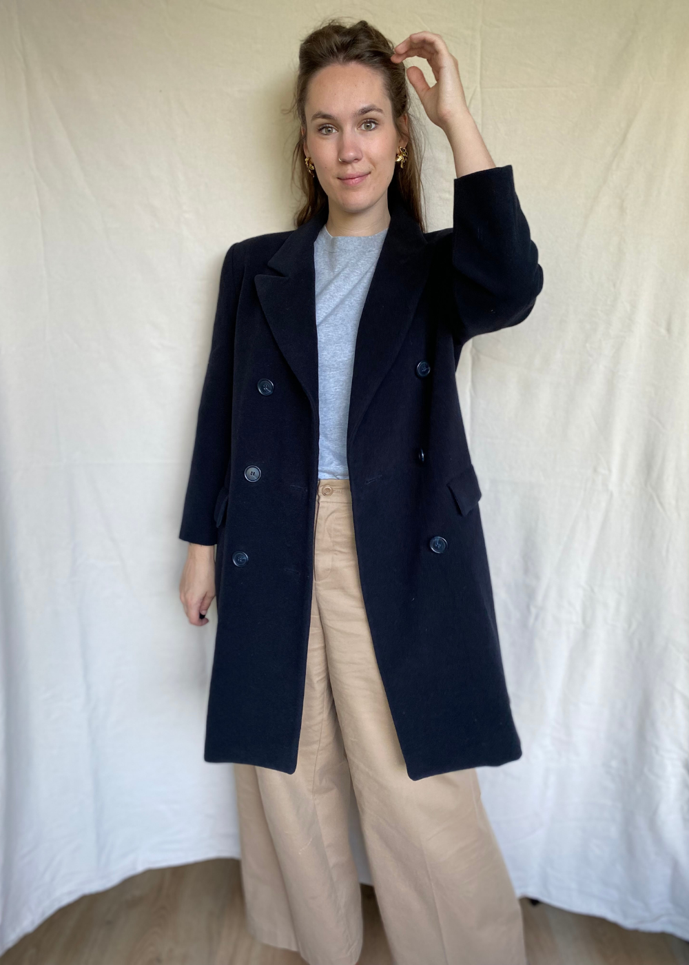 Deze donkerblauwe wool coat is een echte klassieker die nooit uit de mode raakt. Gemaakt van hoogwaardige wol, waardoor je er jarenlang plezier van hebt. Een investering die het dubbel en dwars waard is. Combineer hem met een toffe sjaal en je bent good to go.