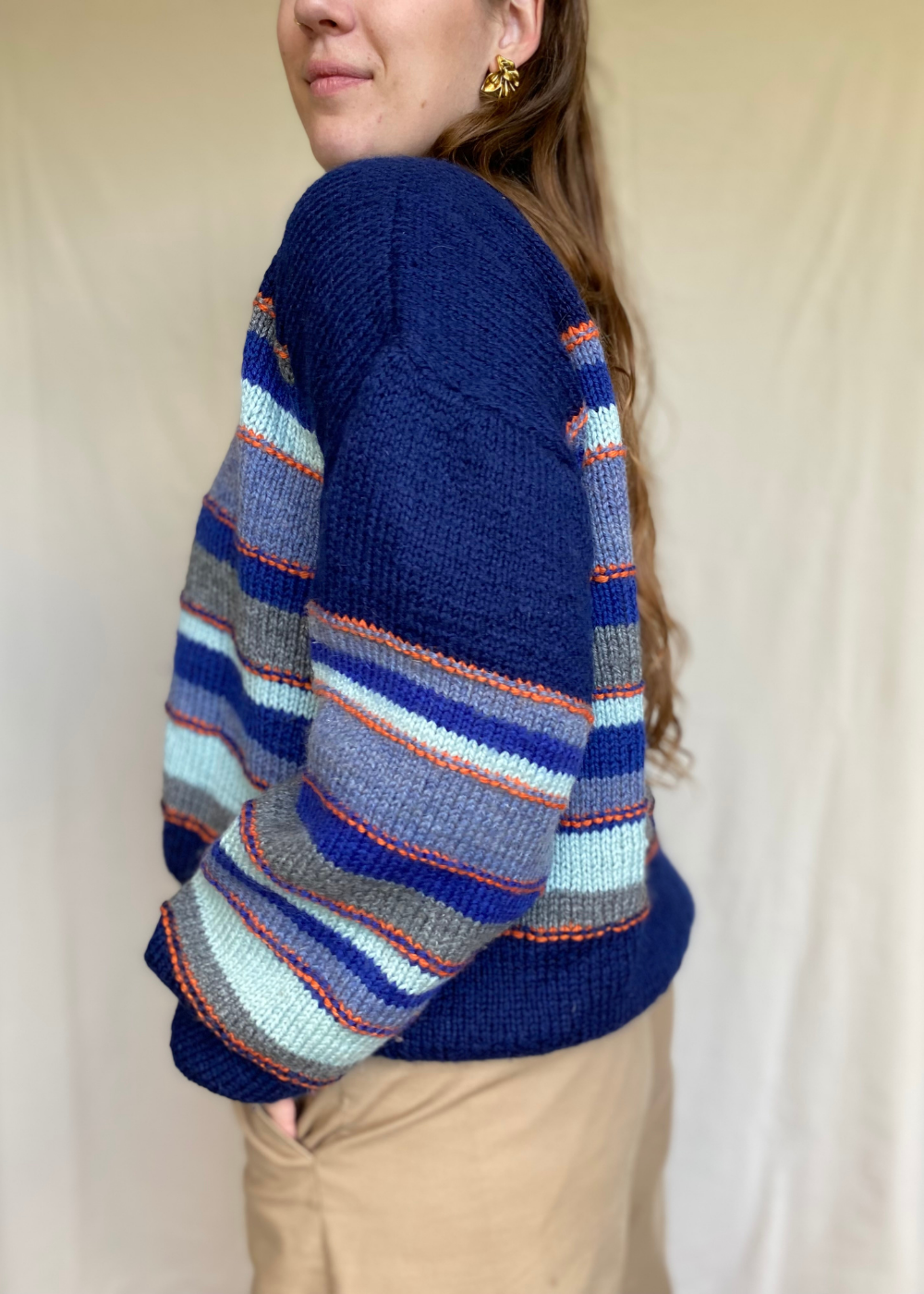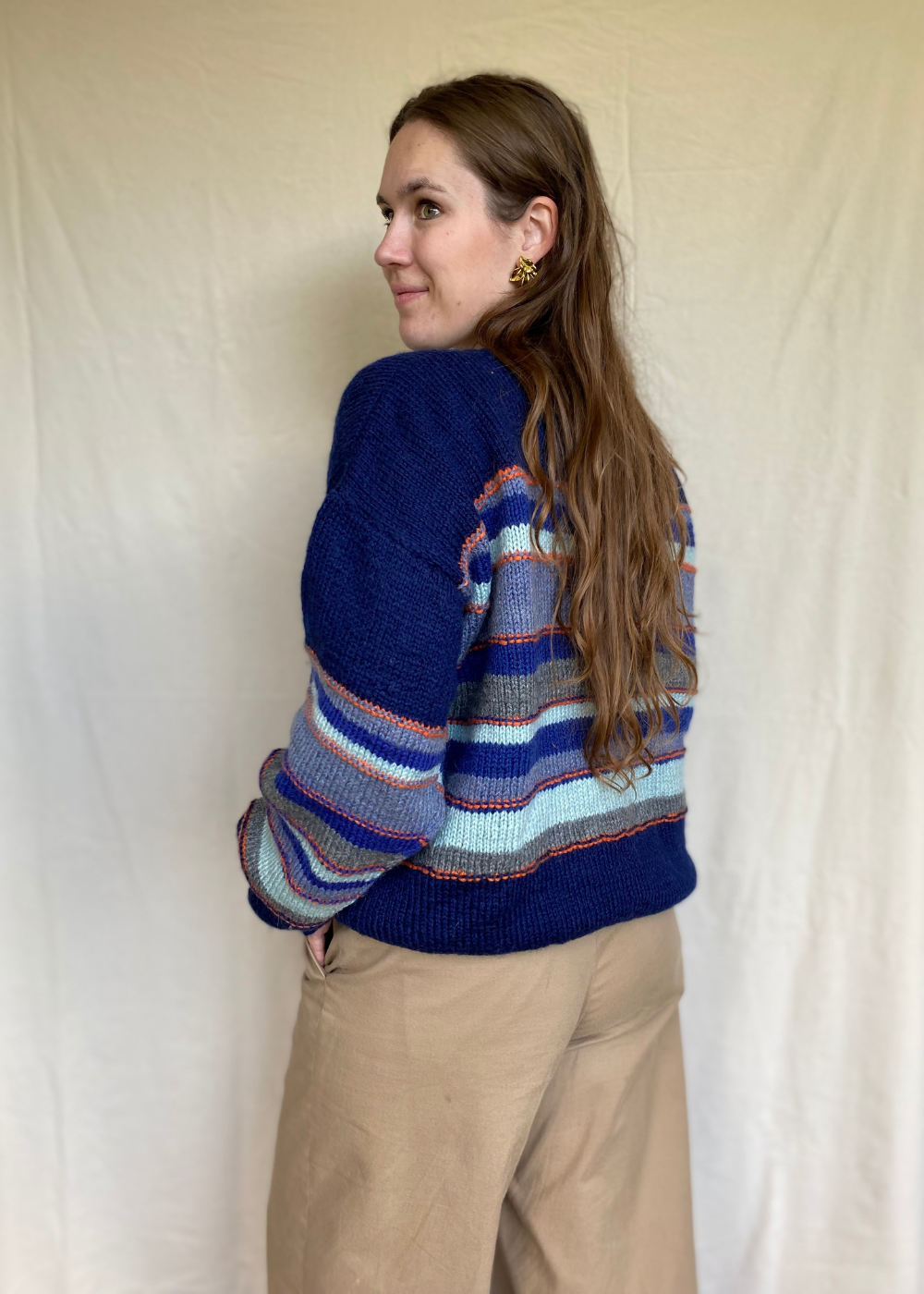 Het bijzondere aan vintage knitwear is dat de truien vaak door iemand zelf zijn gemaakt vroeger. Zo ook deze trui, gemaakt door iemand met veel liefde. Elke kleur en over elke streep is nagedacht. Hoe bijzonder is dat!