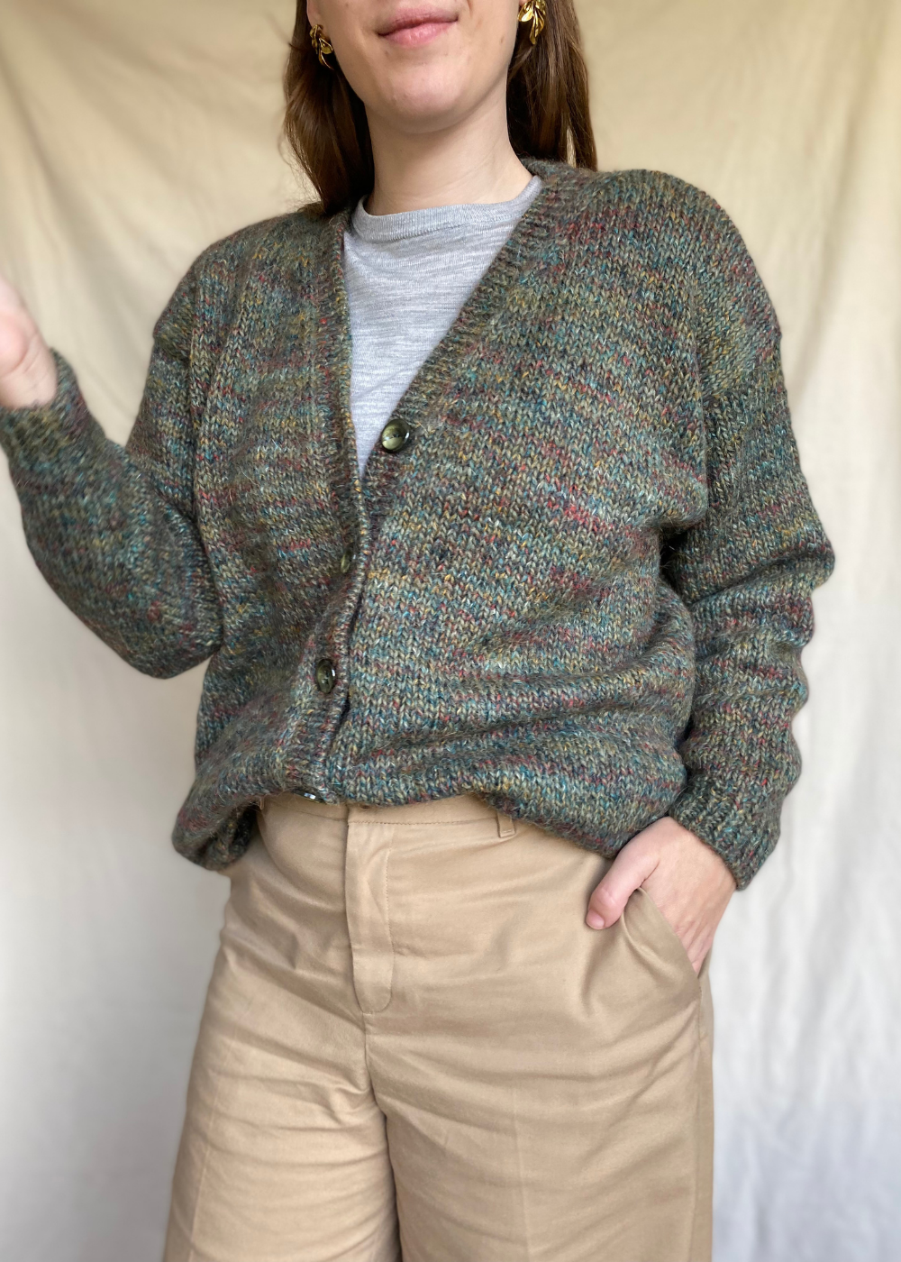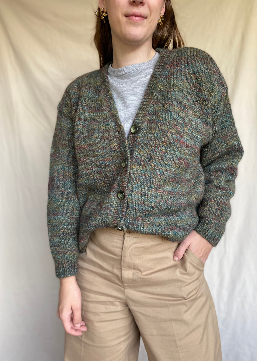Styling tip: draag het over een blouse voor een klassieke look, de groene tint combineert makkelijk met allerlei kleuren.