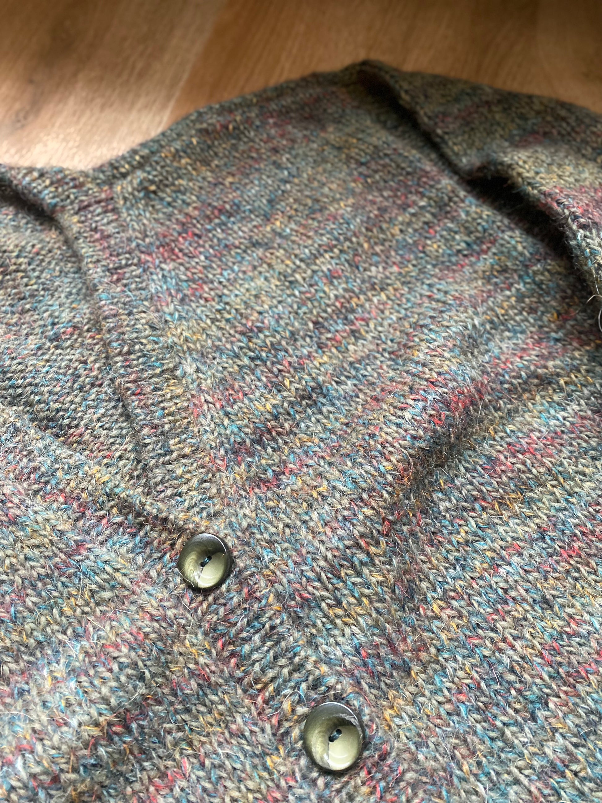 Dit prachtige groene vest is gemaakt van zachte wol die heerlijk comfortabel aanvoelt en niet kriebelt. Door de subtiele kleurdraad die door het breisel loopt en de bijpassende groene knopen, heeft dit vest een uniek uitstraling.