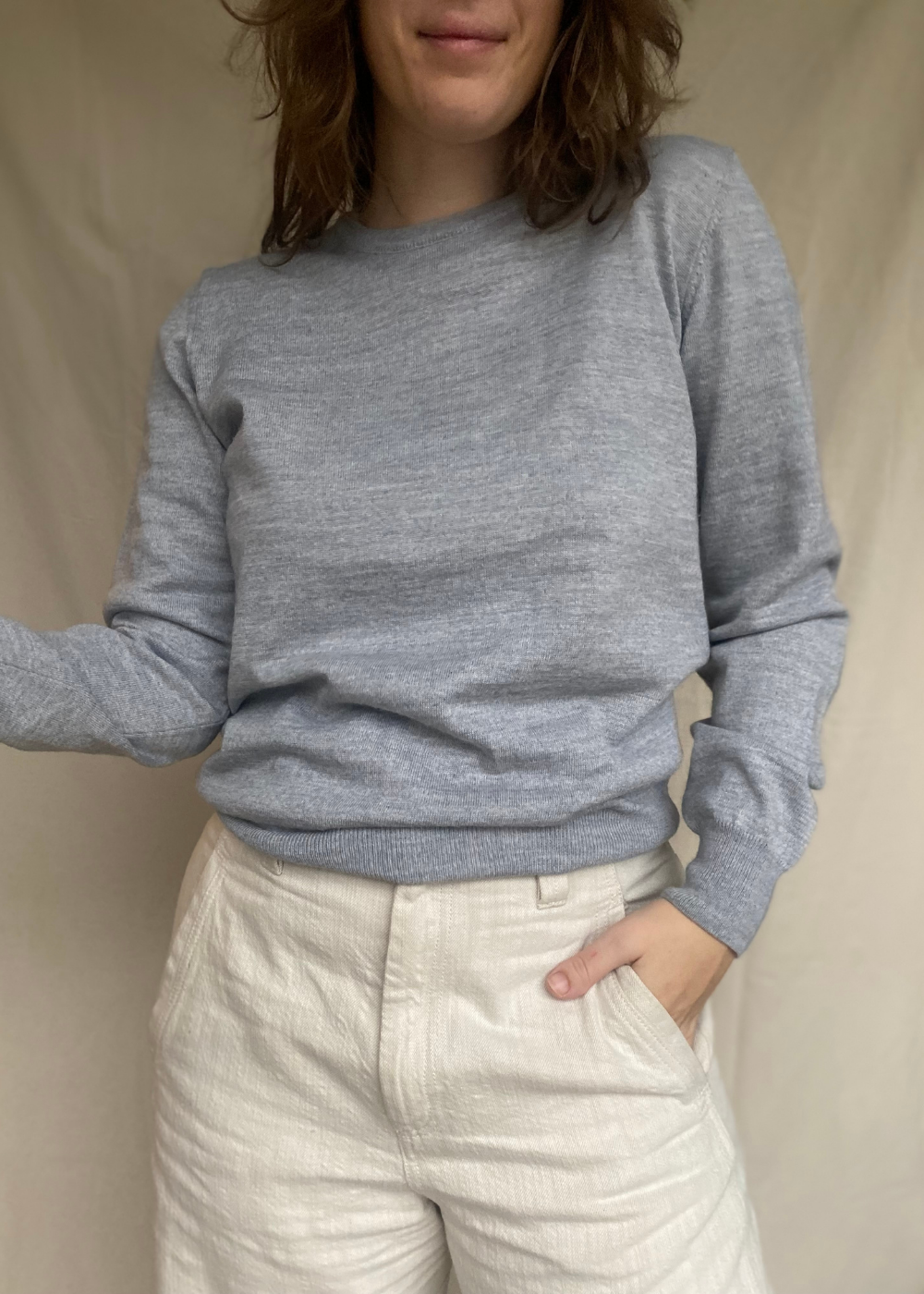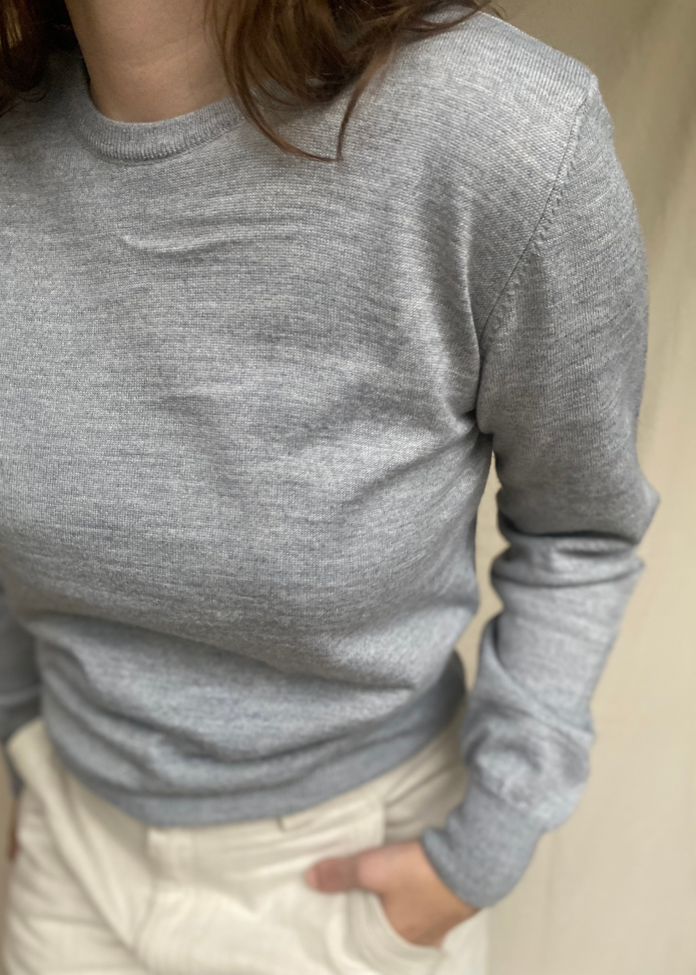 Deze grijze fijngebreide trui is gemaakt van een zachte blend met 50% lana wol, waardoor hij warm, ademend en licht aanvoelt. Het subtiele breisel geeft de trui een klassieke uitstraling. De trui is ideaal als basislaag onder gilets of blazers.