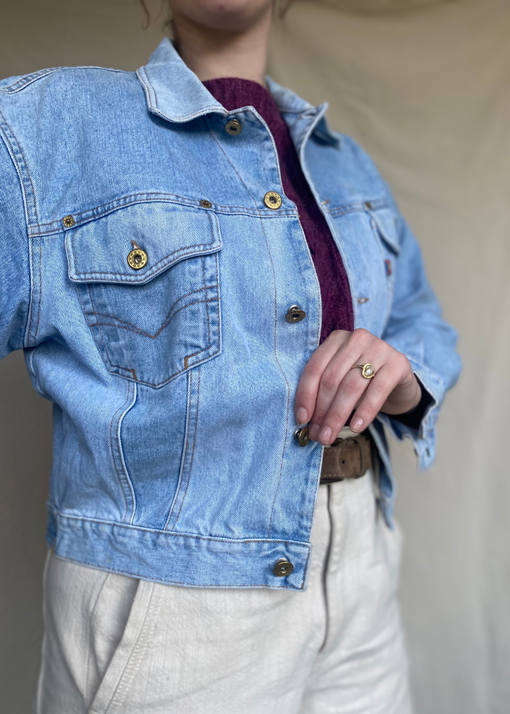Een vintage spijkerjas is een echte musthave. Tijdloos, klassiek & te combineren met elke kledingstijl. Dit model heeft knopen op de achterkant zodat je de spijkerjas iets meer een bomber jack effect kunt geven. Daarbij is dit item in perfecte staat.
