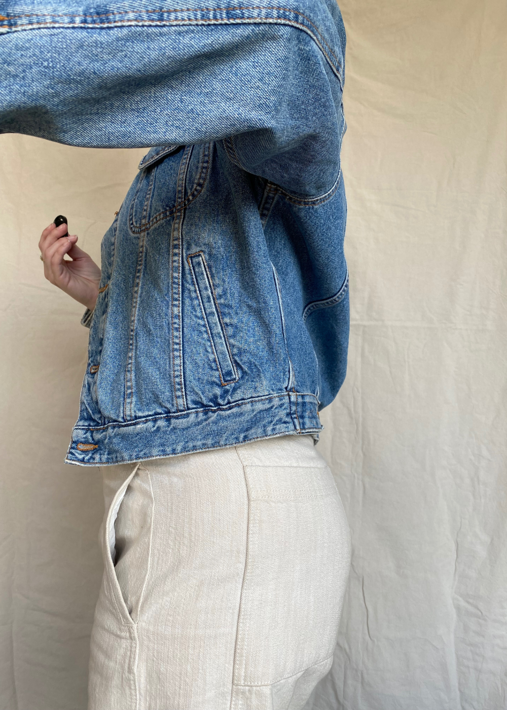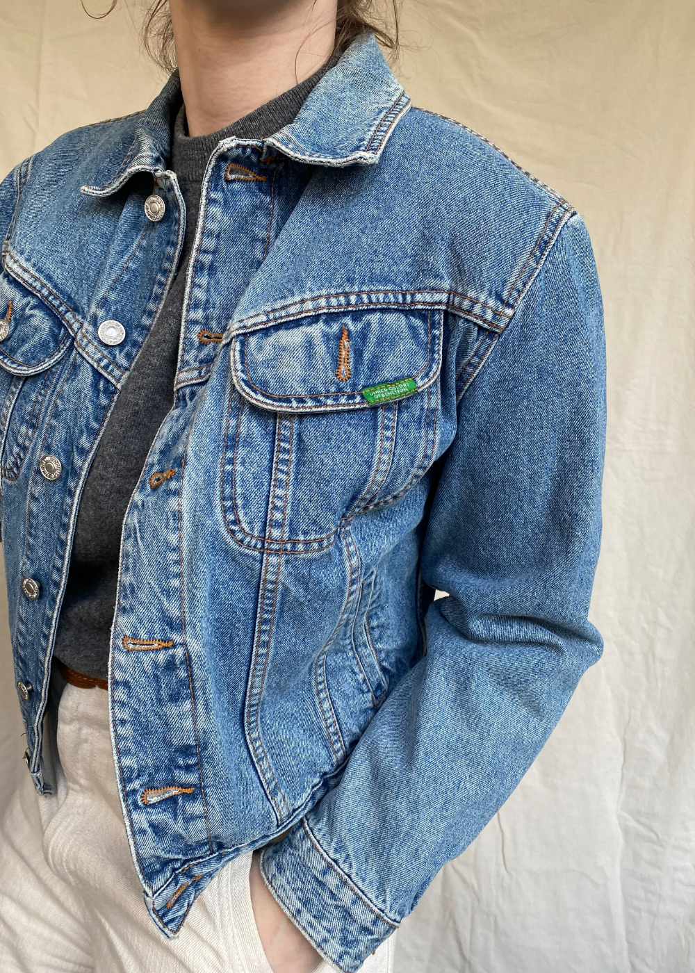 Een vintage spijkerjas is een echte musthave. Tijdloos, klassiek & te combineren met elke kledingstijl. Dit model heeft knopen op de achterkant zodat je de spijkerjas iets meer een bomber jack effect kunt geven. Daarbij is dit item in perfecte staat.