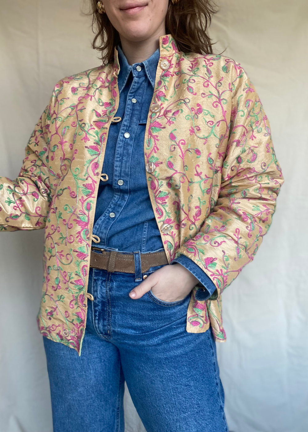 Wauw, dit zeldzame pareltje is echt one of a kind. Zoiets als dit vind ik niet vaak in de groothandel. Het jasje is gemaakt van 100% viscose, heerlijk voor het aankomende seizoen. Hij is in perfecte staat en ready to wear.