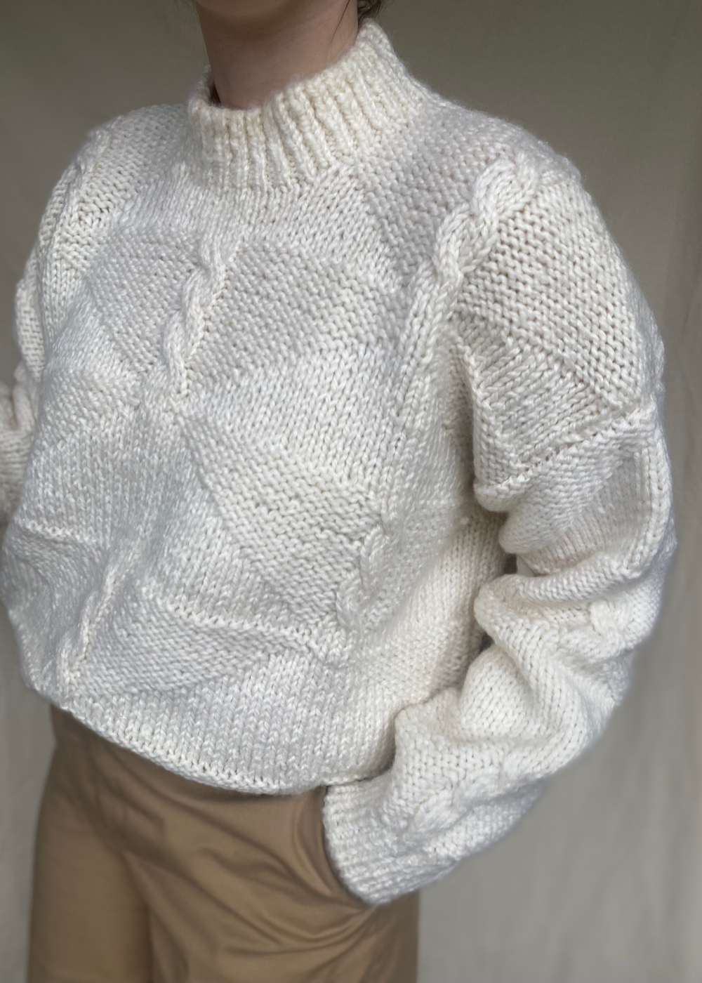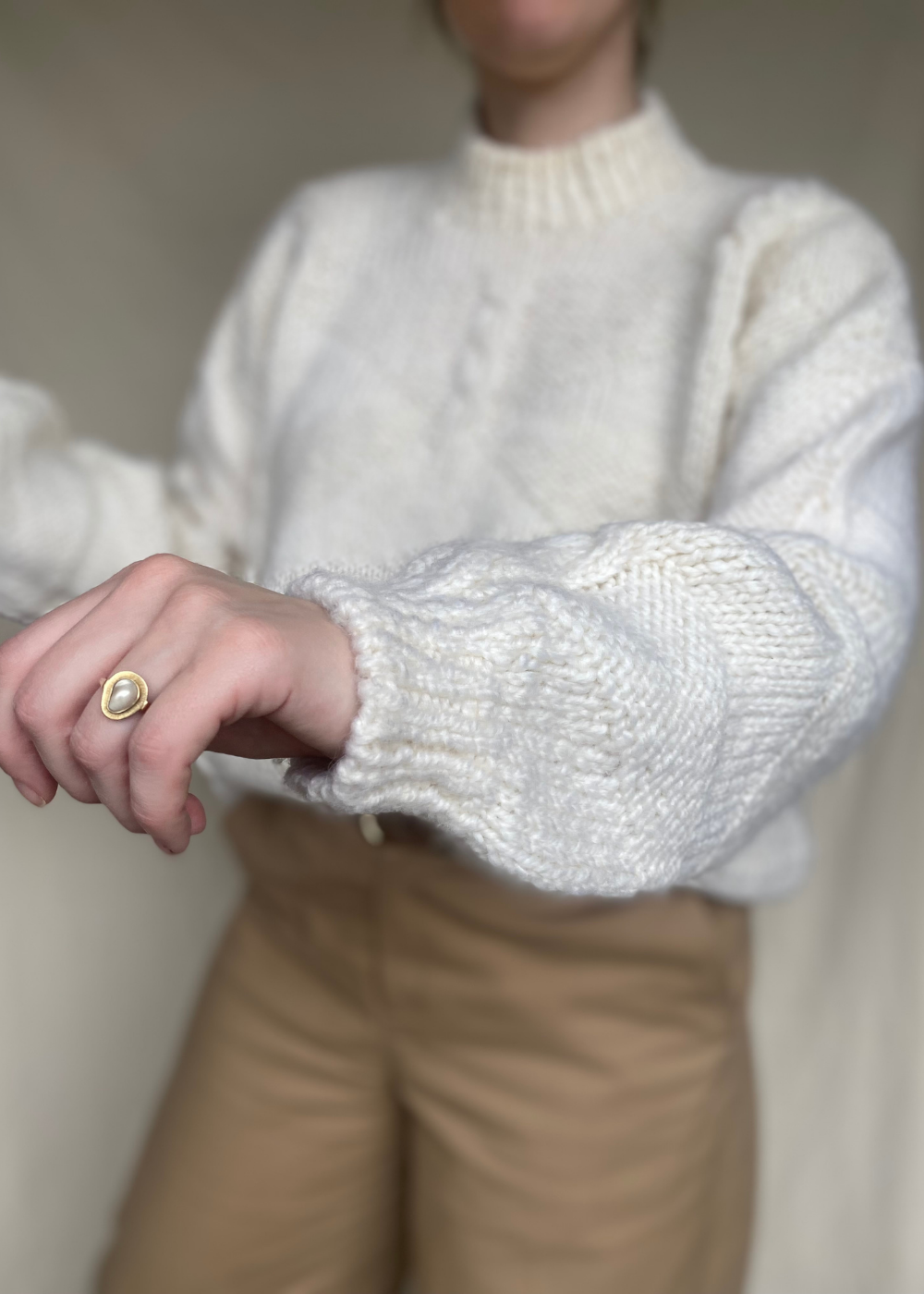 - De schoudernaad loopt door op de bovenarm, hierdoor vormt de trui zich aan jouw lichaam